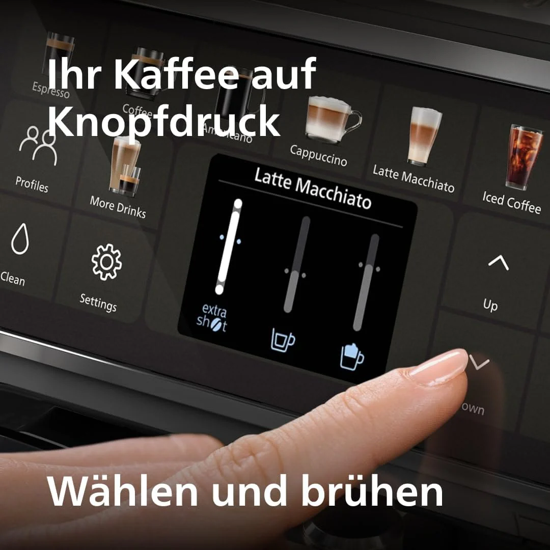 Bereiten Sie auf Tastendruck aromatische Kaffeespezialitäten wie Kaffee, Espresso, Cappuccino und Latte Macchiato zu. Das LatteGo Milchsystem sorgt für samtigen Milchschaum und ist in Sekunden gereinigt.